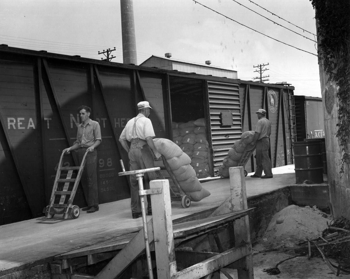 Another large industry – Murphy Products Company – did not move to Burlington until the mid-1920s, but it also lasted a long time and provided stable employment for many residents and newcomers. As a former Walworth County agricultural agent and manager of a Delavan-area farm, James H. Murphy studied problems farmers were having with their beef and dairy cattle and created combinations of protein, vitamins, and minerals that could be used to supplement homegrown livestock feeds. Joined by his brother, Lawrence, the two Murphys started a company producing mineral concentrates in Delavan in 1921.